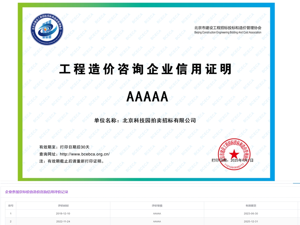 公司業務主要涉及招標、造價咨詢、拍賣等。公司先后獲得財政部認定的政府采購招標甲級代理資格、住房和城鄉建設部認定的工程招標代理機構甲級資質、國家發(fā)展和改革委員會認定的中央投資項目招標代理機構甲級資格、現在是住房和城鄉建設部認定的工程造價咨詢甲級資質企業。中國拍賣行業AAA企業。并通過了質量管理體系認證、環(huán)境管理體系認證及職業健康安全管理體系認證。